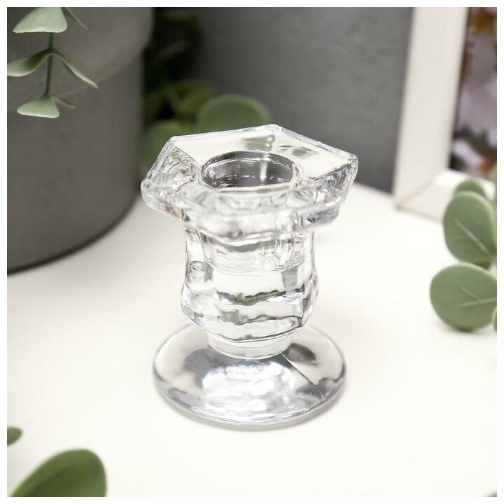 10 цен на Подсвечник стеклянный Юнона прозрачный для 1 свечи, 6х5х4,5 см