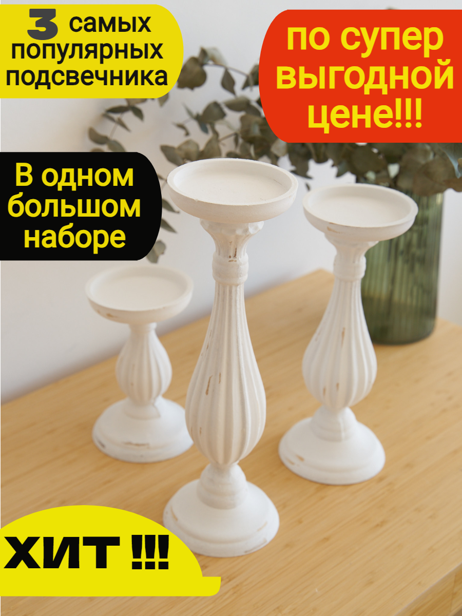 10 цен на Набор белых деревянных подсвечников канделябров в стиле Икеа