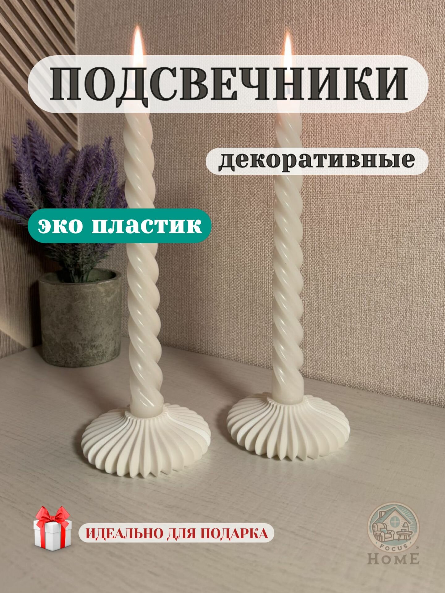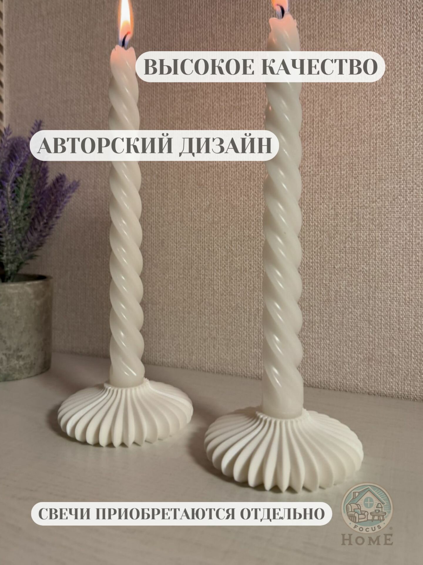 Подсвечник для свечей белый спираль, 1 шт/эко пластик 300 ₽