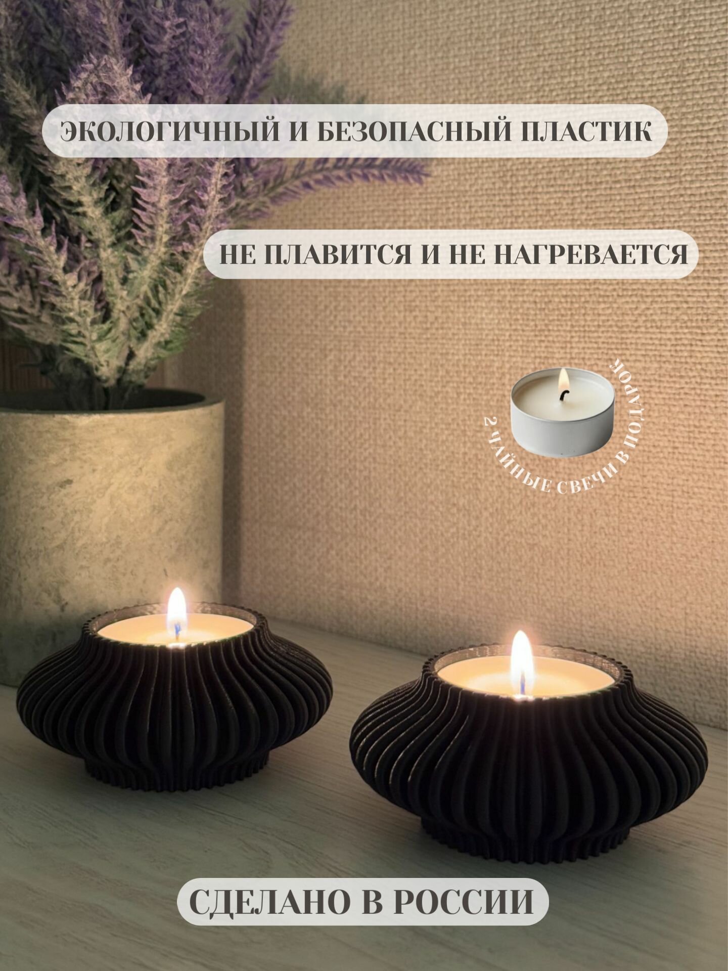 Подсвечник для свечей лотос черный, набор 2 шт/эко пластик 650 ₽