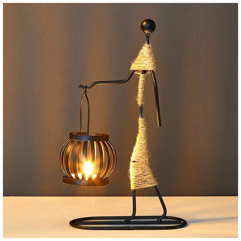 Декоративный подсвечник для чайных свечей/металлический/винтаж/кованный/высокий/новогодний/в африканском стиле Emilion African Woman A (черный) информация: