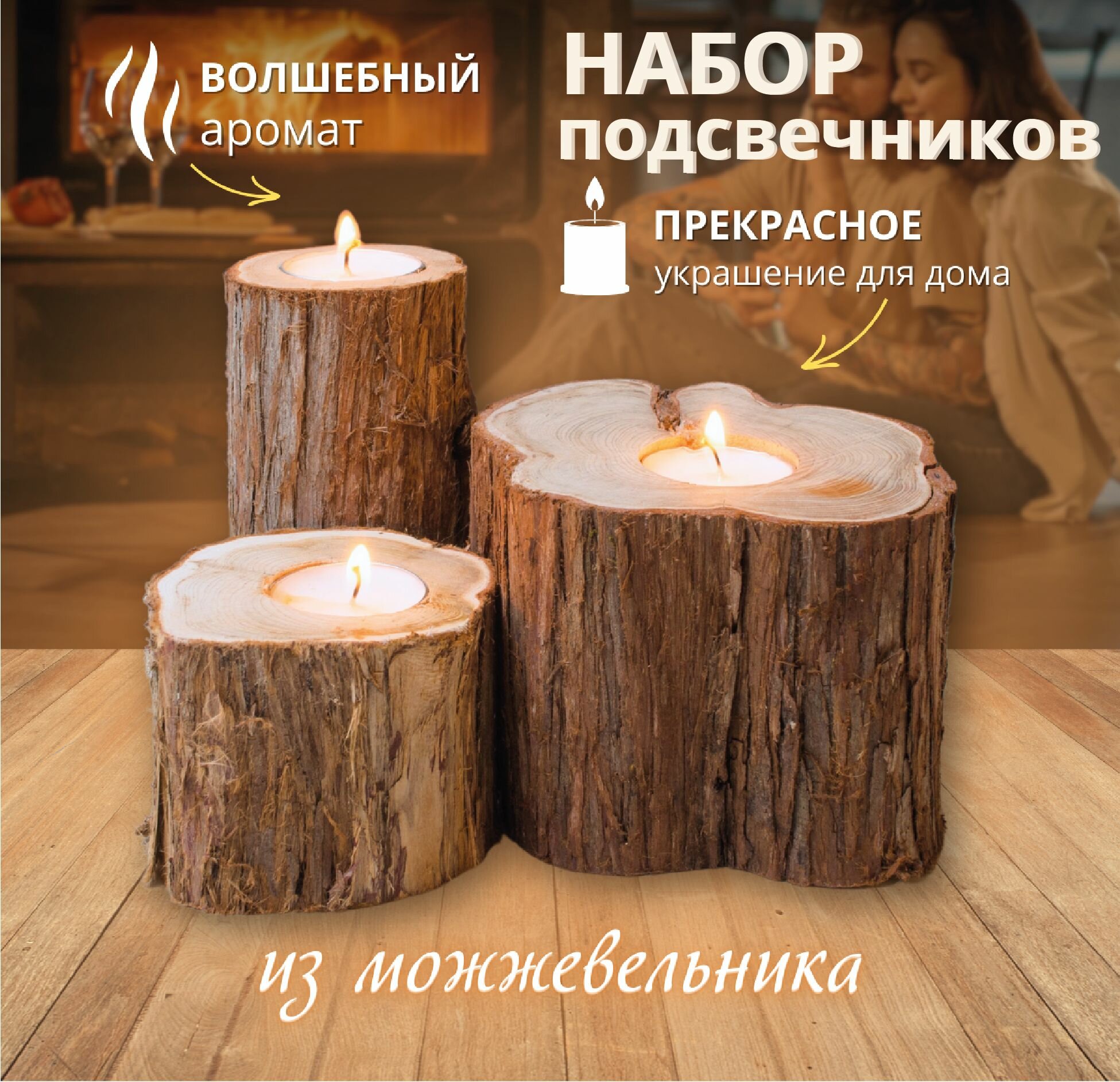 10 цен на Набор подсвечников из можжевельника, 3 шт