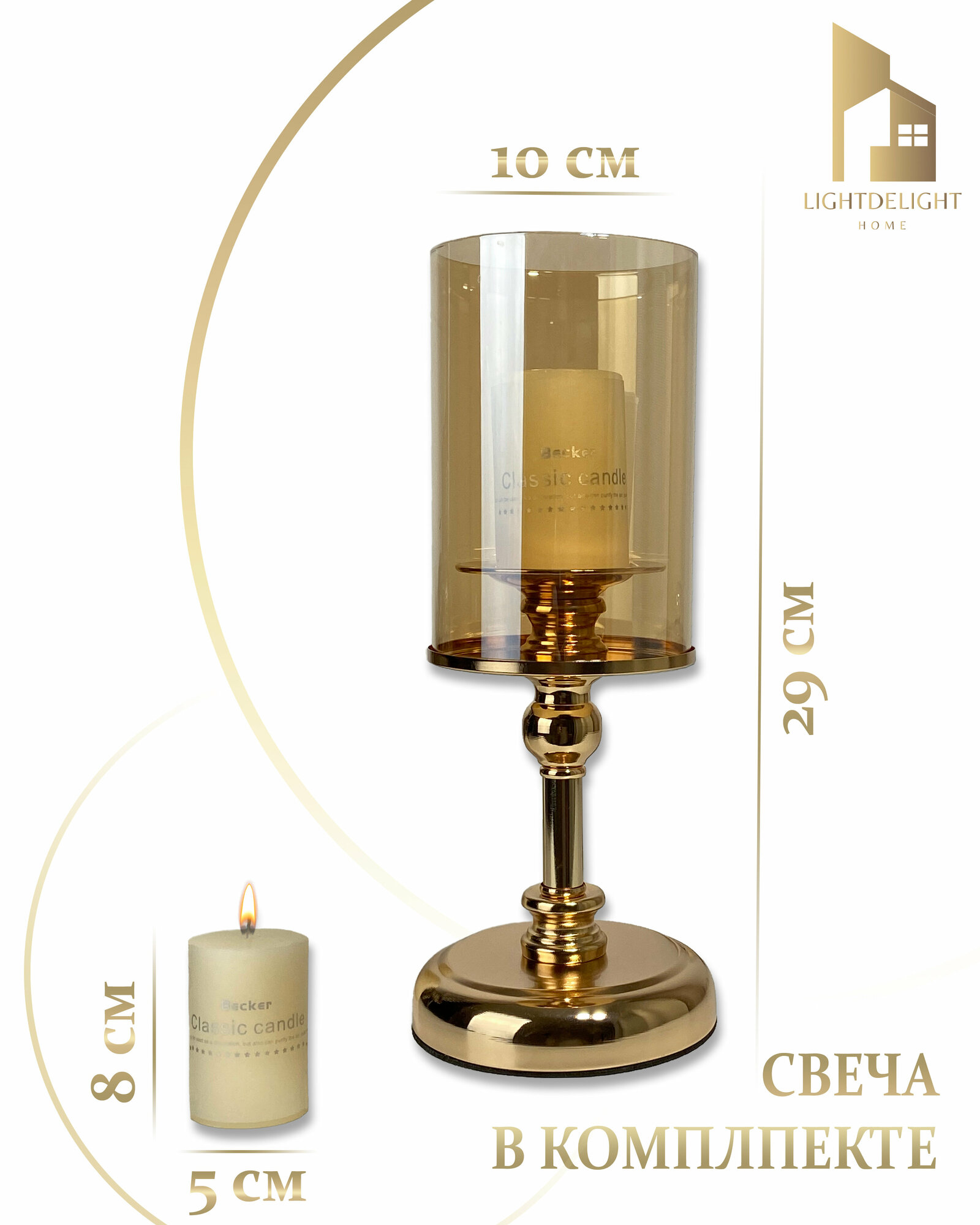 Подсвечник для свечей новогодний, золотой 29 см, на ножке информация: