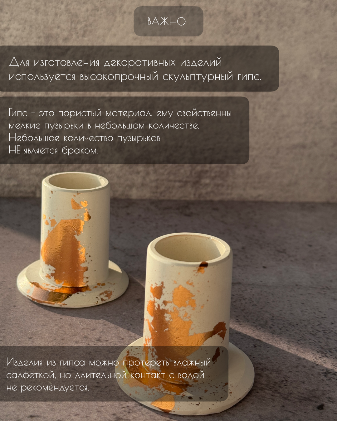 Подсвечники из гипса для столовых свечей с бронзовой поталью; Набор 2 шт информация: