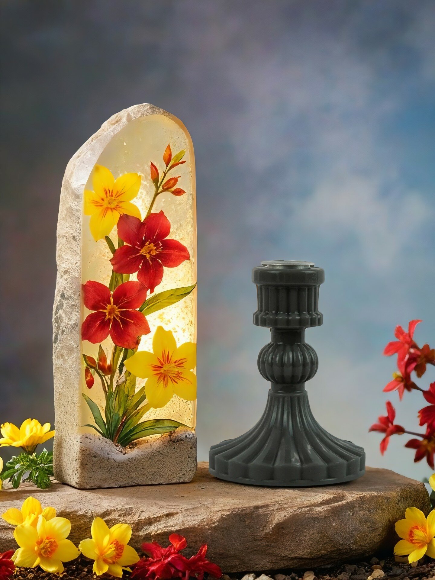Подсвечник для тонкой свечи, литьевой мрамор, высота 10см, ширина в основании 8 см, цвет красно-оранжевый (06.1) 701 ₽