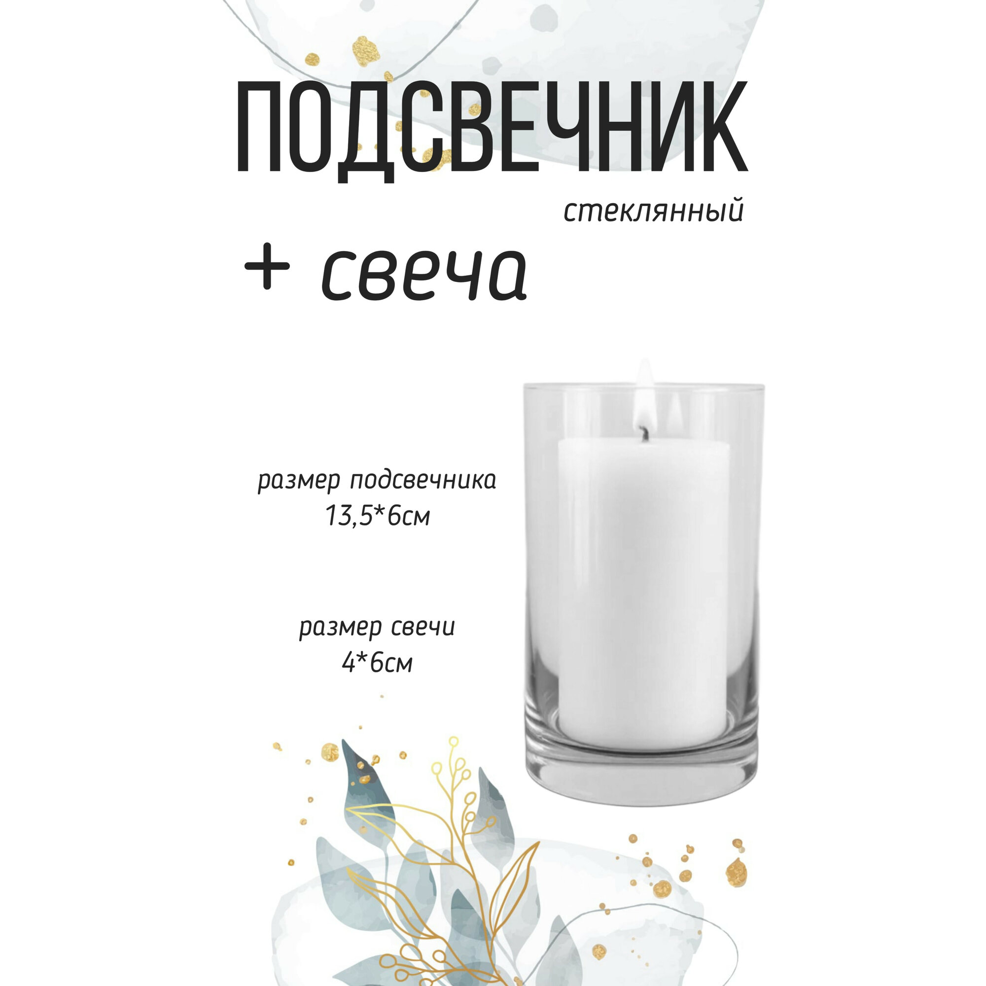 Набор подсвечник стеклянный 13,5 см* 6 см и свеча 4 см*6см информация:
