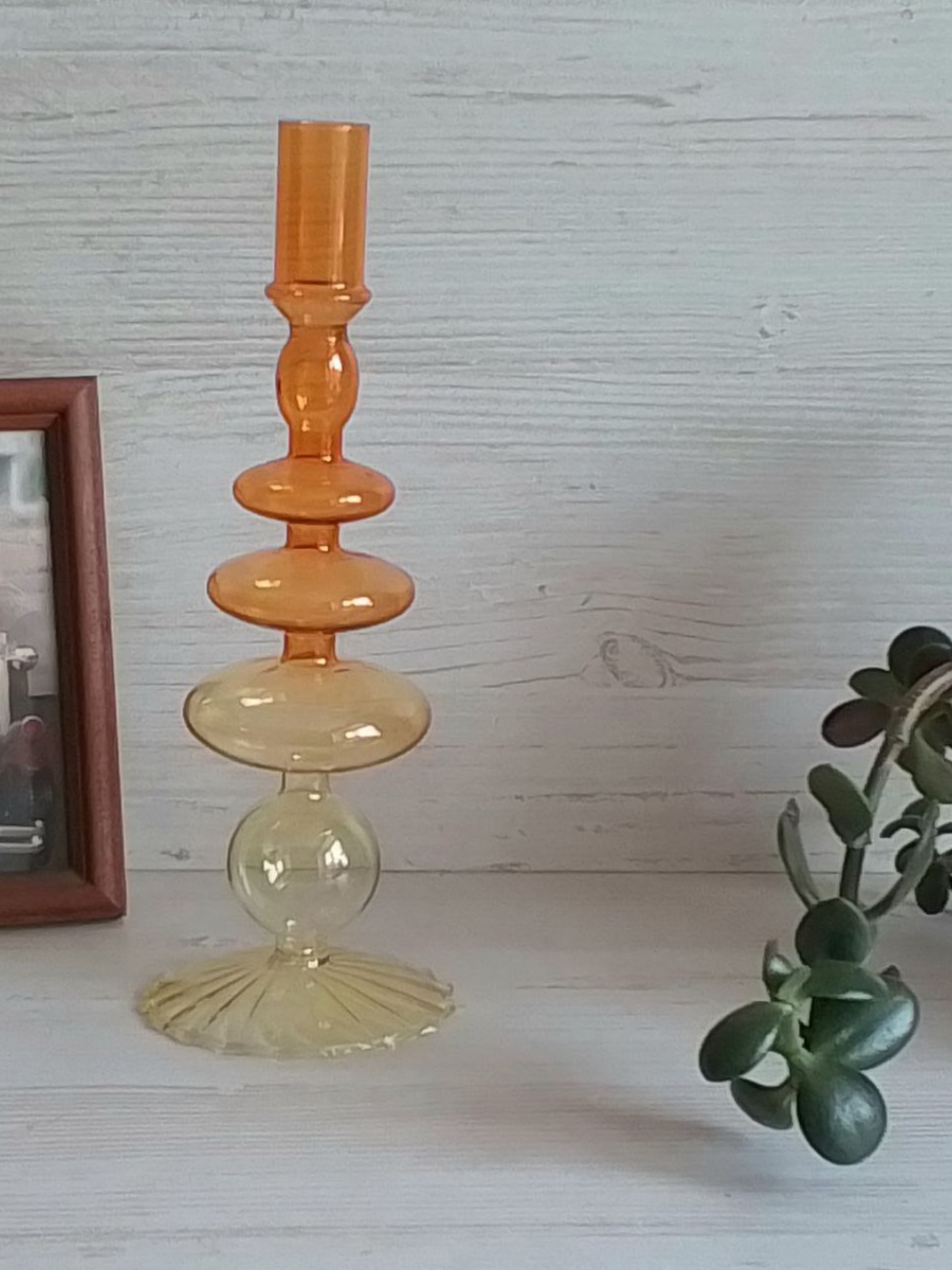 10 цен на Подсвечник для 1 свечи, стеклянный, желтый, оранжевый