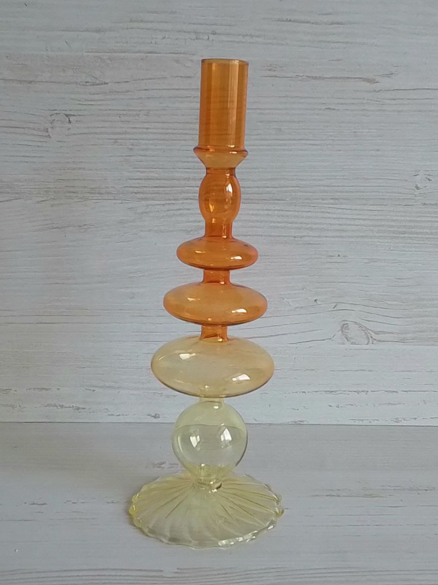 Подсвечник для 1 свечи, стеклянный, желтый, оранжевый информация: