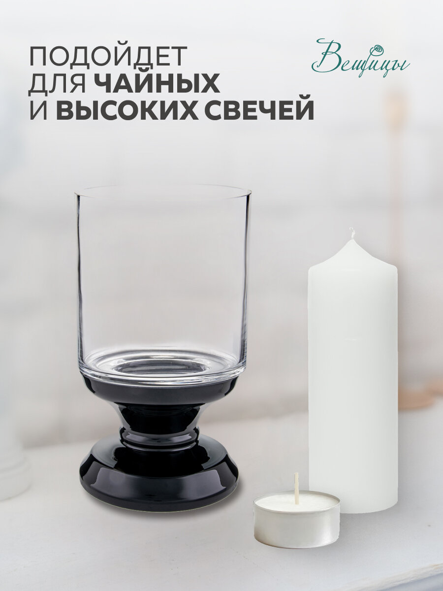 10 цен на Декоративный подсвечник из цветного стекла, Д150 Ш150 В255, бело-черный