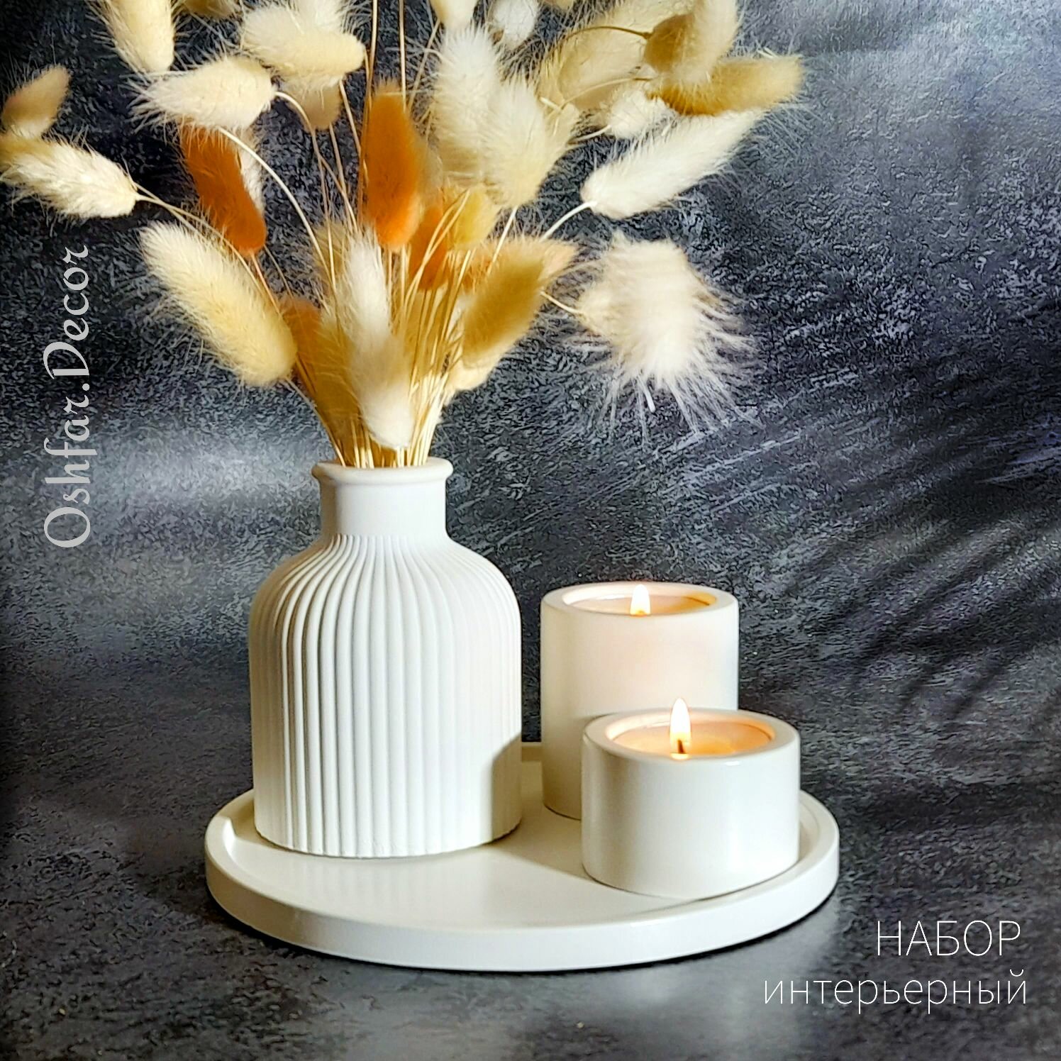Отзывы на Декоративный набор: ваза Scandi, подсвечники Column, круглый поднос из гипса. Oshfar Decor