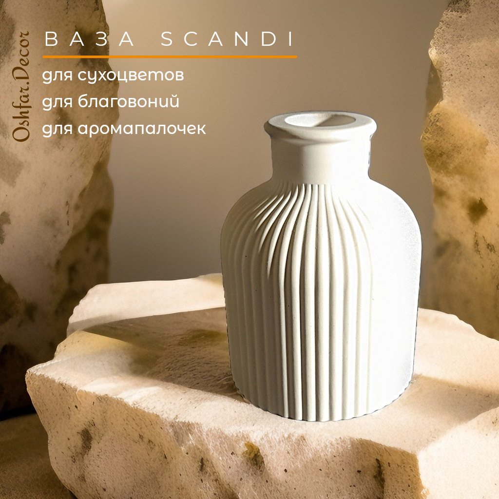 Декоративный набор: ваза Scandi, подсвечники Column, круглый поднос из гипса. Oshfar Decor информация: