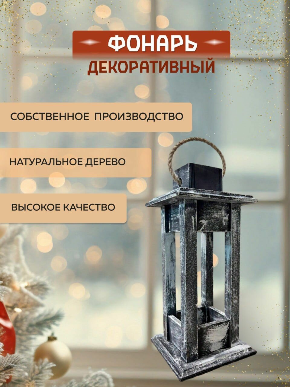 Подсвечник деревянный, декоративный деревянный "Фонарь" высота 34 см на НГ информация: