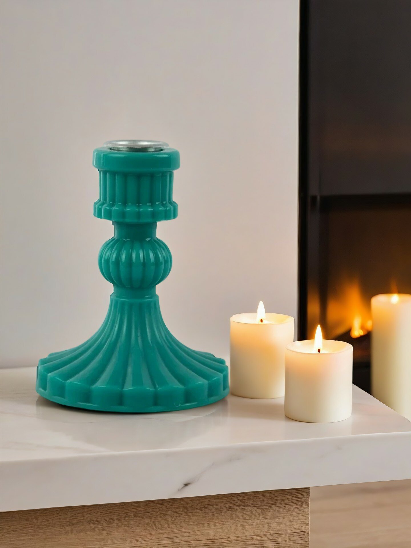 Подсвечник для тонкой свечи, литьевой мрамор, высота 10см, ширина в основании 8 см, цвет морская волна (10) 701 ₽