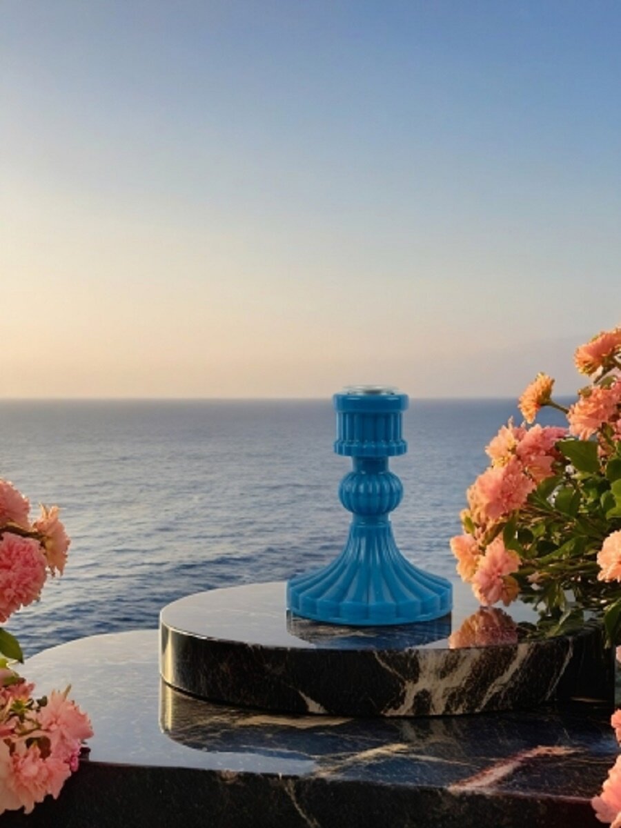 Подсвечник для тонкой свечи, литьевой мрамор, высота 10см, ширина в основании 8 см, цвет голубой (11.1) 701 ₽
