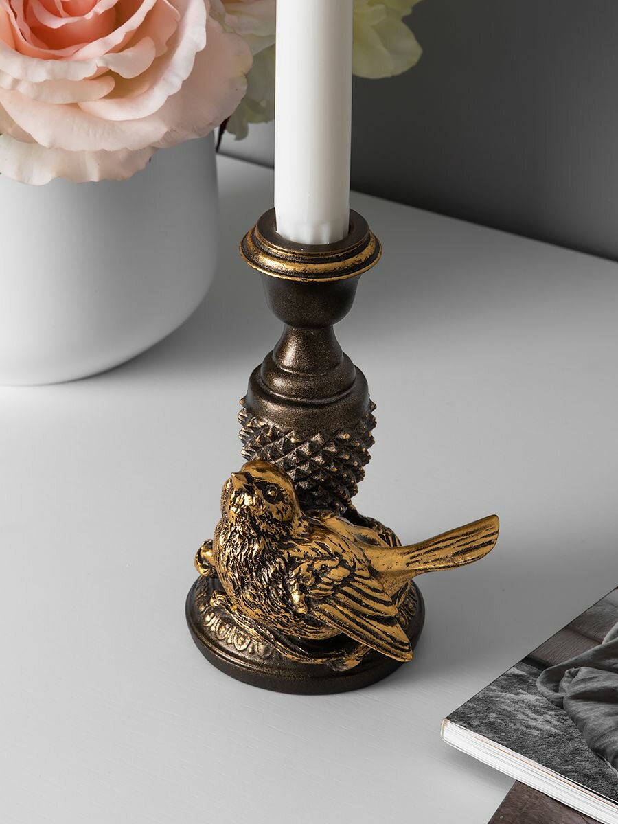 Фигурный подсвечник Bogacho Птичка Терра правый со статуэткой для украшения интерьера гостиной, спальни и кухни информация: