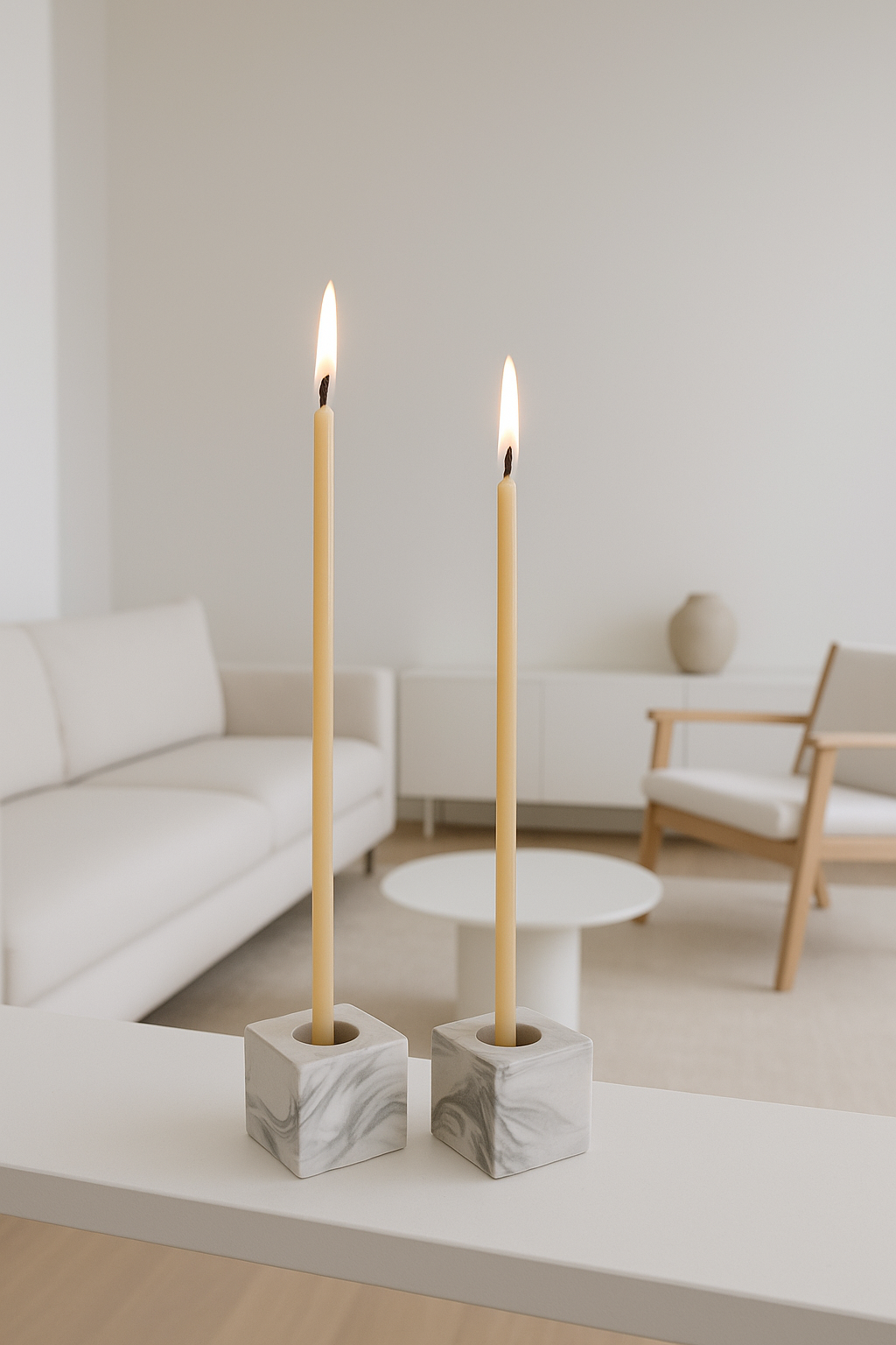 Подсвечники из гипса для тонких свечей, набор 2 шт, мрамор информация:
