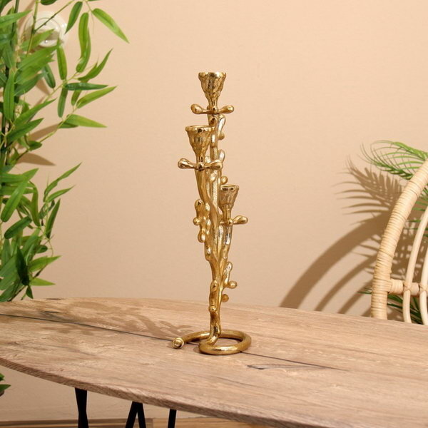 10 цен на Подсвечник на 3 свечи "Фьюри" алюминий 10х18х37 см, цвет: золотистый