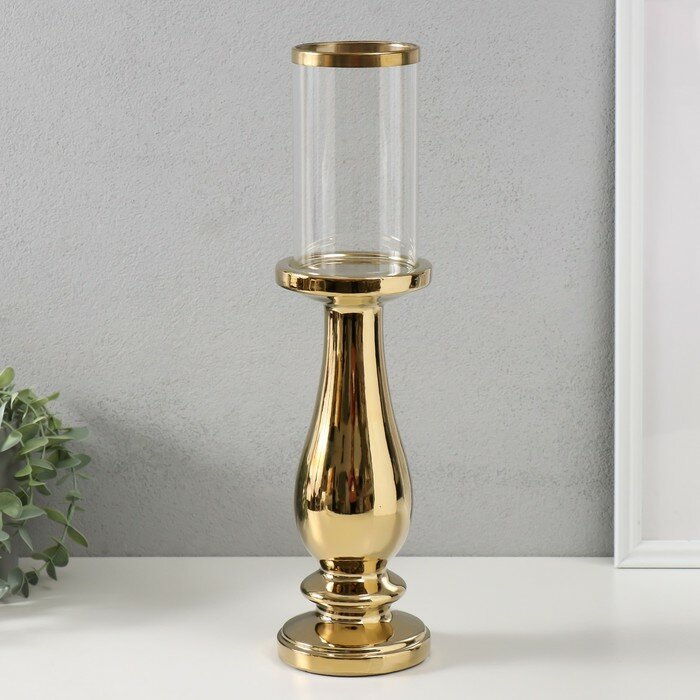 10 цен на Подсвечник на 1 свечу «Аванти», керамика, стекло, d=8 см, золото, 10×10×40.5 см