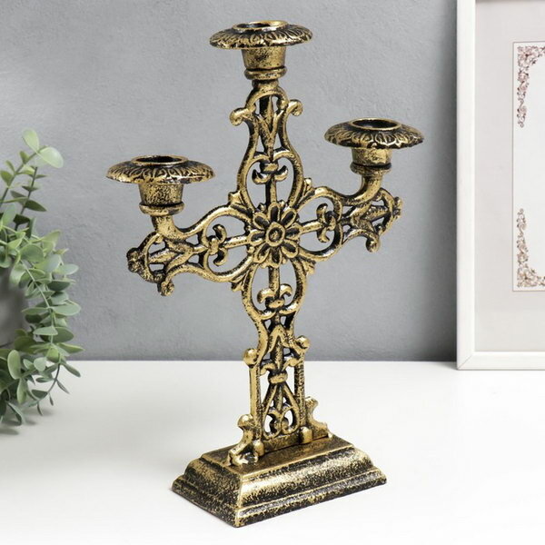 Отзывы на Металлический подсвечник на 3 свечи "Канделябр. Кельт", чугун, золотая патина 33x9x24 см