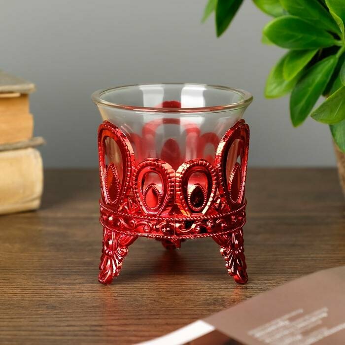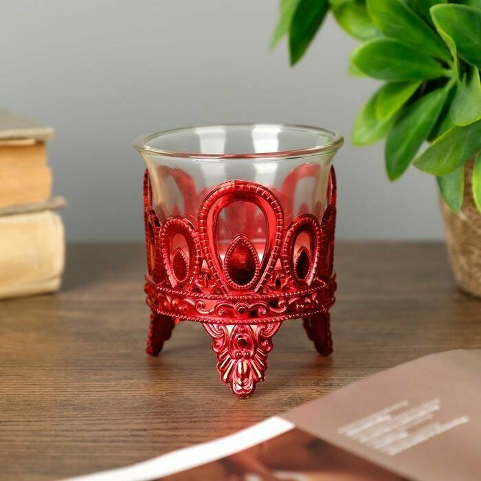 Подсвечник на 1 свечу «Капельки», пластик, стекло, красный, 7×6×6 см информация: