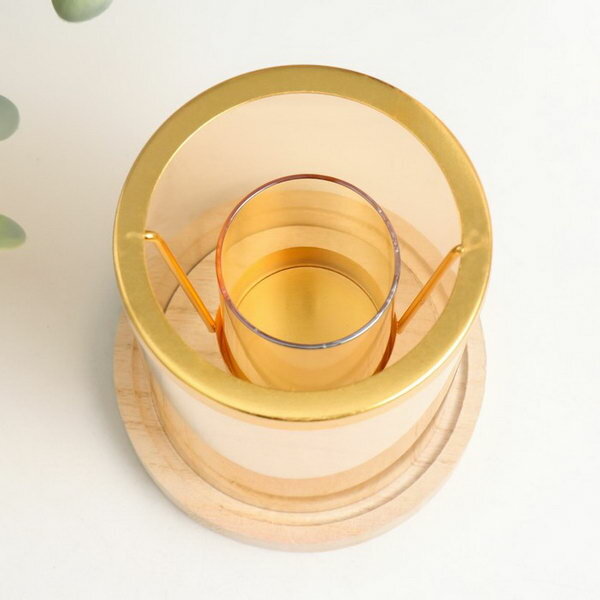 10 цен на Подсвечник на 1 свечу "Стаканчик в цилиндре", стекло, металл, дерево, d=5 см, 12x12x14.5 см