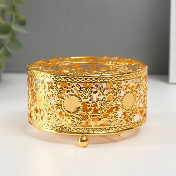 10 цен на Металлический подсвечник на 1 свечу "Круг. Венок из листьев", золото, d=5.5 см, 11x11x5.6 см