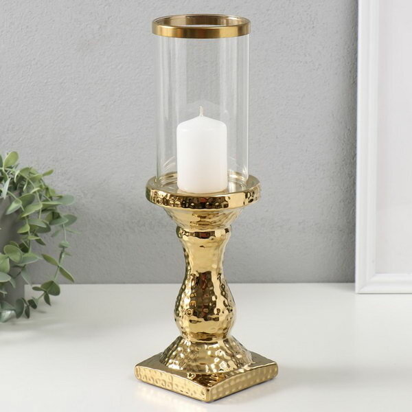 10 цен на Подсвечник на 1 свечу "Монти", керамика, стекло, d=7.5 см, золото, 9x9x31.5 см