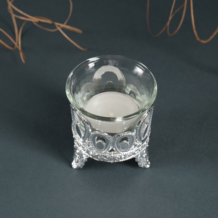 10 цен на Подсвечник на 1 свечу «Капельки», пластик, стекло, серебро, 7×6×6 см