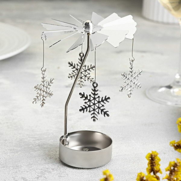 10 цен на Подсвечник "Карусель вращающаяся со снежинками", серебряная, металл