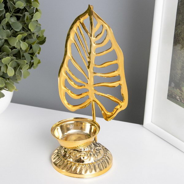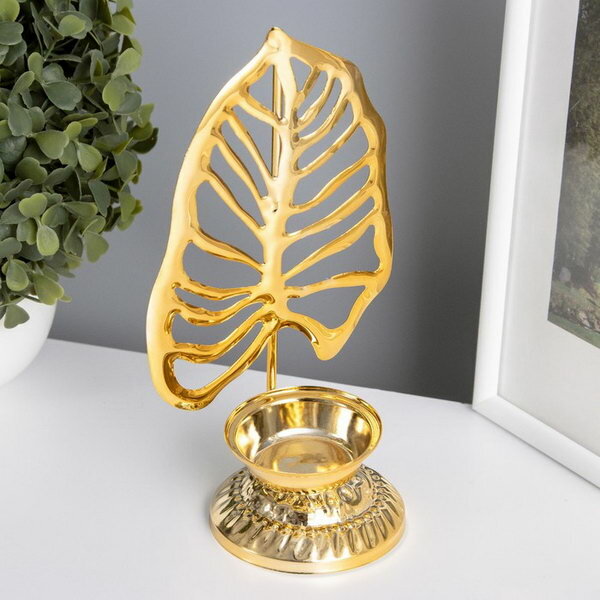 Отзывы на Металлический подсвечник на 1 свечу "Пальмовый лист на подставке", золото, d=4.7 см, 7.5x10.5x20 см