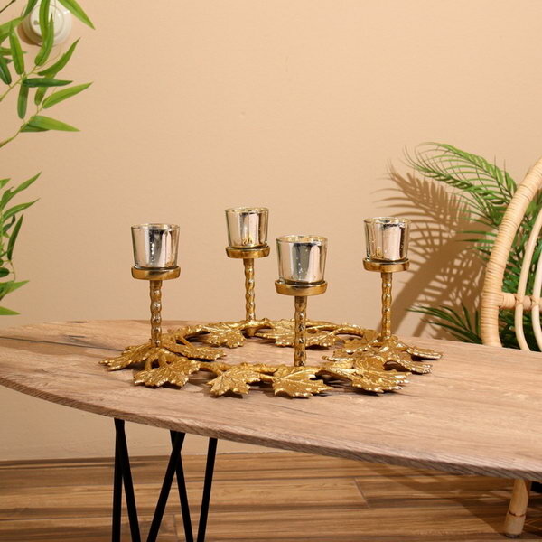 10 цен на Подсвечник на 4 свечи "Кленовые листья" алюминий 46х46х18 см