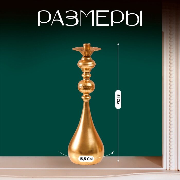 Подсвечник металл на 1 свечу «Вазир», золото, d=4 см, 11×11×21 см 1 856 ₽