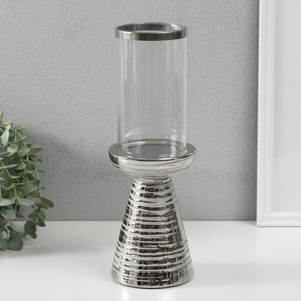 Подсвечник на 1 свечу "Омут", керамика, стекло, d=8 см, серебро, 9.5x9.5x26 см 1 227 ₽