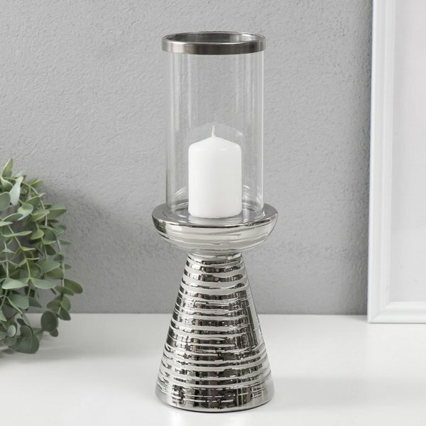 Подсвечник на 1 свечу "Моро", керамика, стекло, d=8 см, серебро, 12x12x17.2 см 1 022 ₽