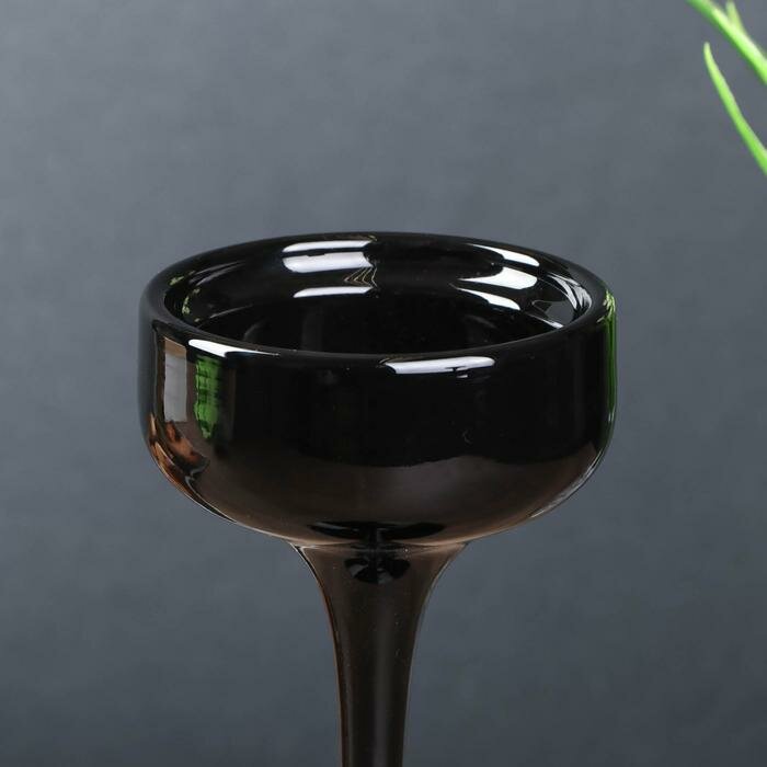 10 цен на 2 шт. Стеклянный подсвечник на 1 свечу «Бокал-креманка», набор 3 шт, чёрный, h= 20 см, 23 см, 26×12×12 см
