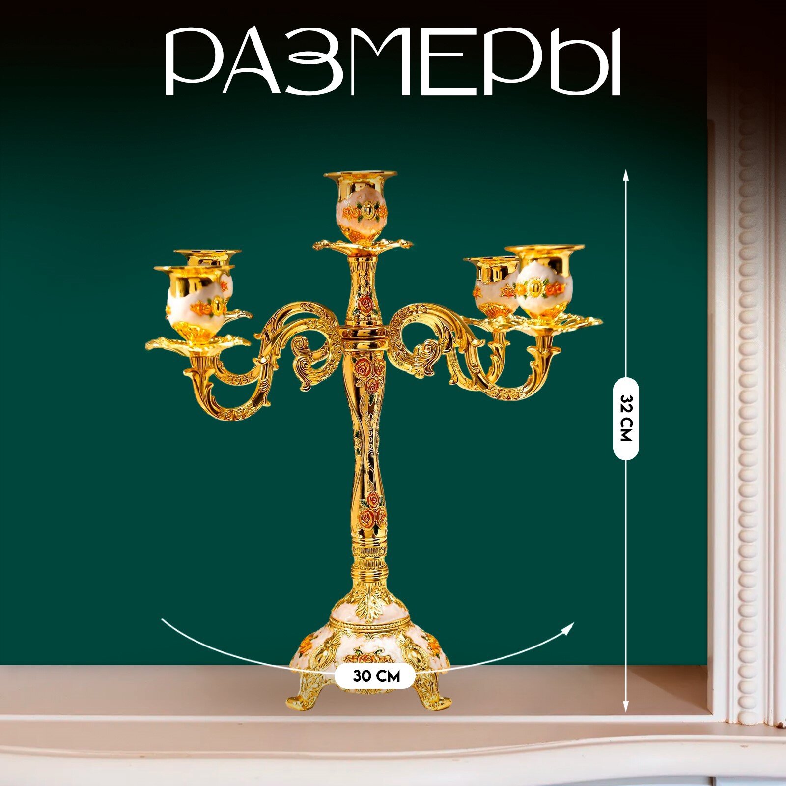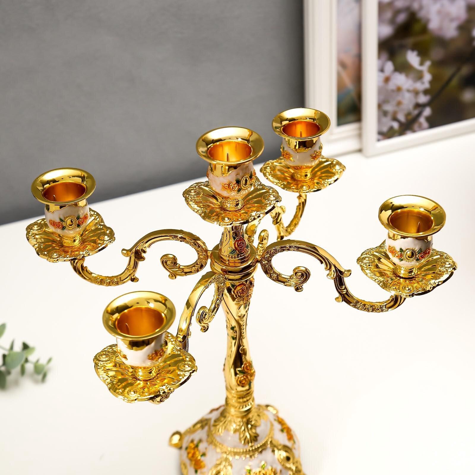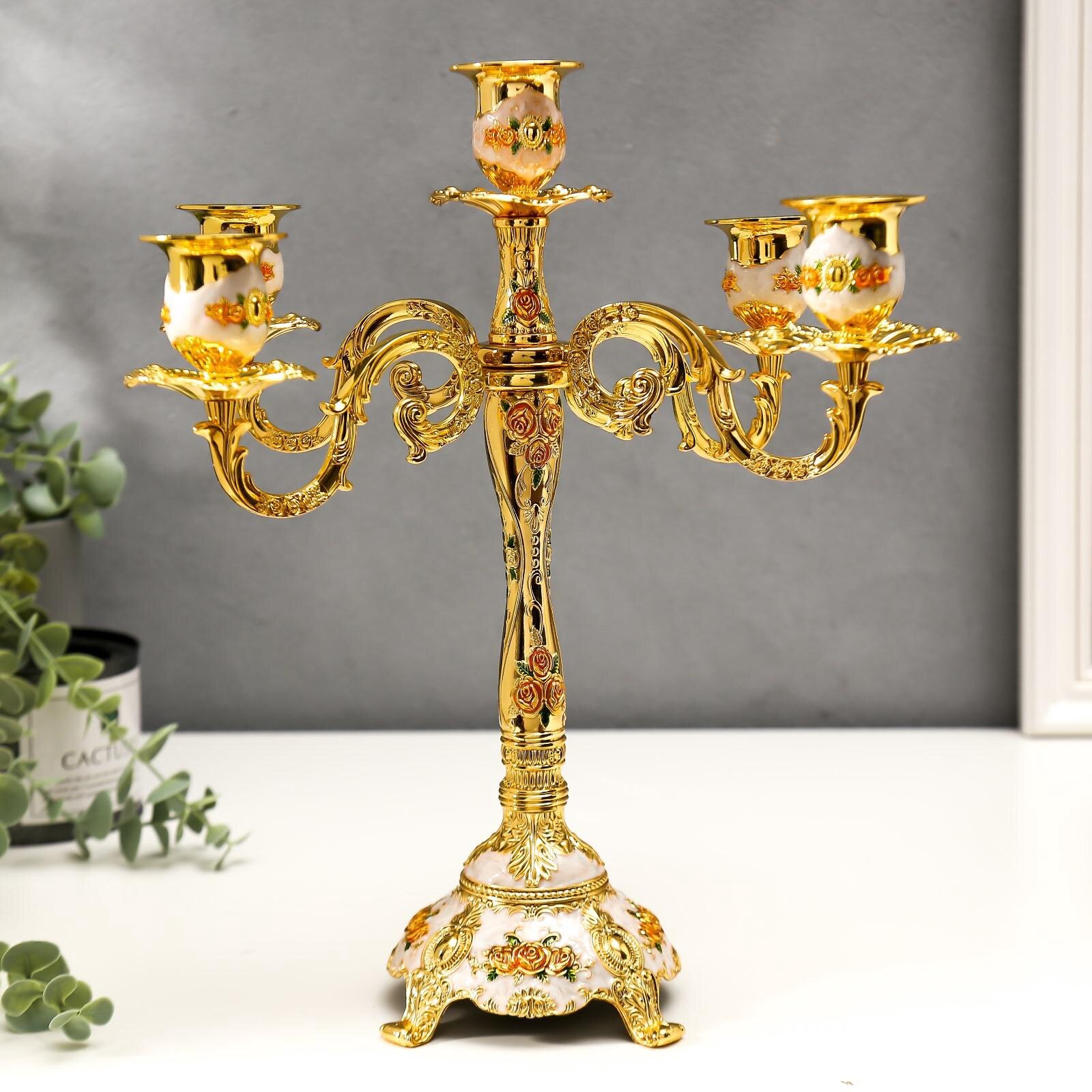 10 цен на Металлический подсвечник на 5 свечей «Канделябр. Розы. Белая эмаль», золото, 32×30×30 см