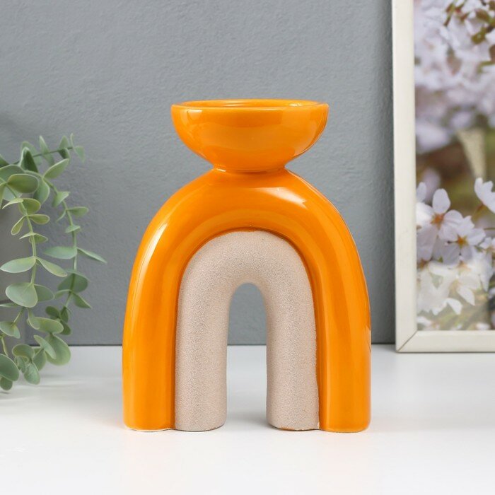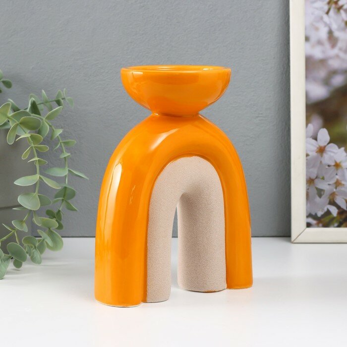 Подсвечник керамика на 1 свечу «Медуза», песочно-оранжевый, 13.5×8.7×18 см информация:
