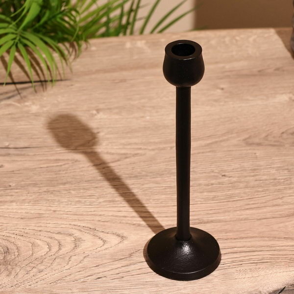 Подсвечник металл на 1 свечу "Стильный" чёрный матовый 26х10х10 см
