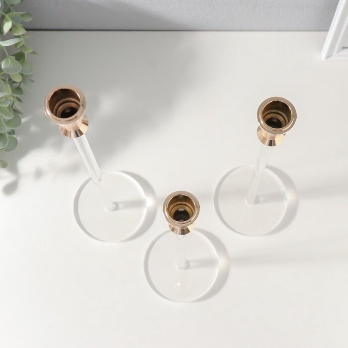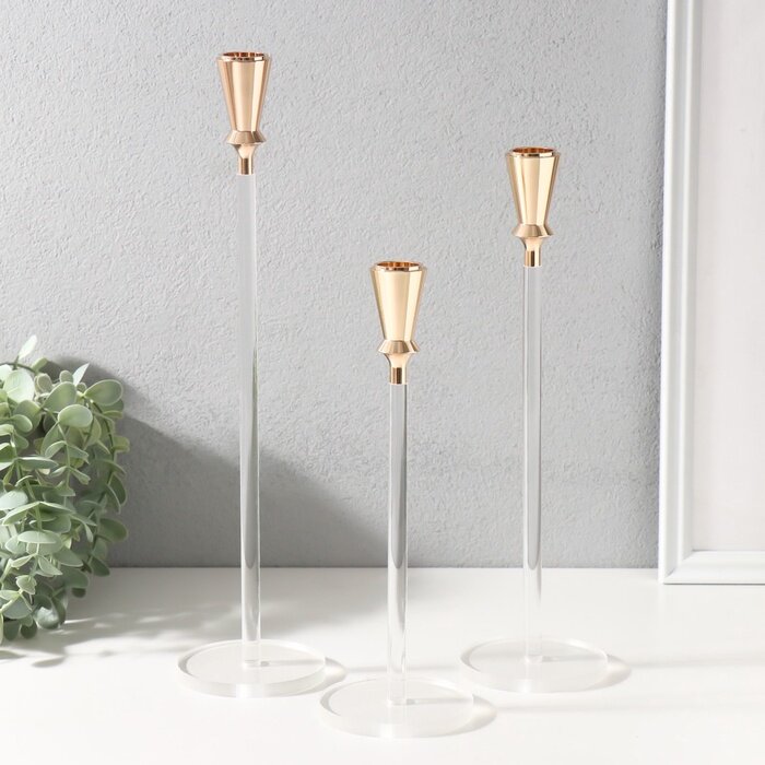 Подсвечник металл, акрил на 1 свечу «Вихрь», d=2.2 см, набор 3 шт, h=25.5 см, 23.5 см, 21 см 2 649 ₽