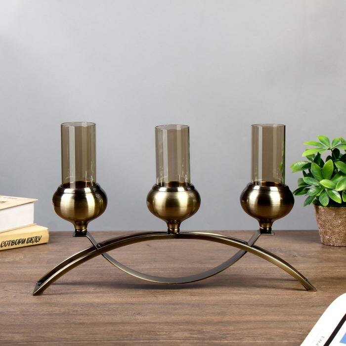 10 цен на Металлический подсвечник на 3 свечи «Элегантность», под латунь 15×42.5×8 см