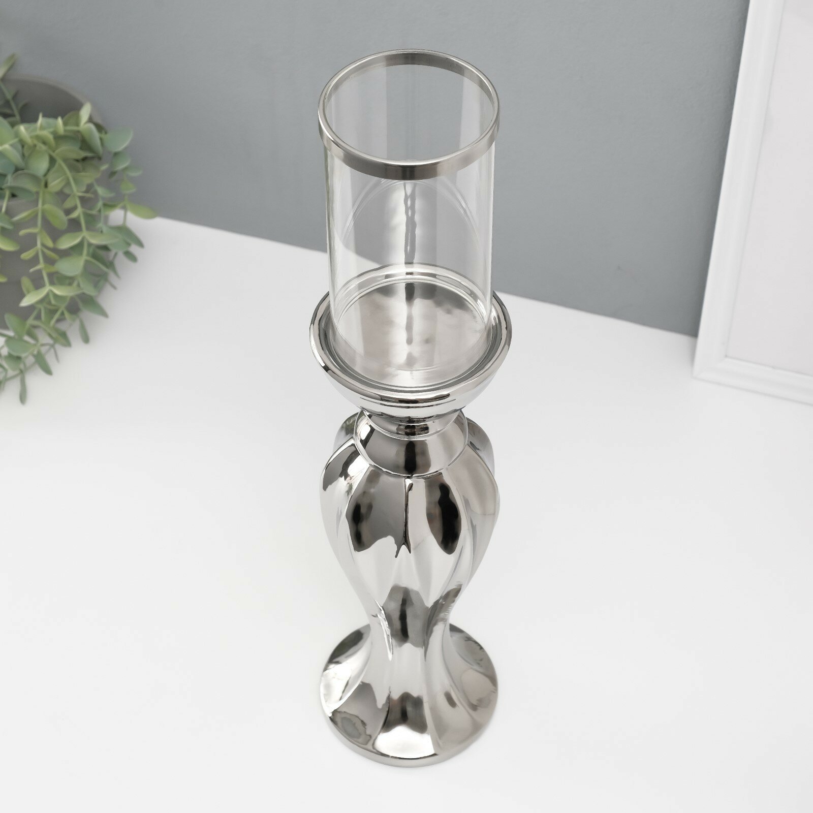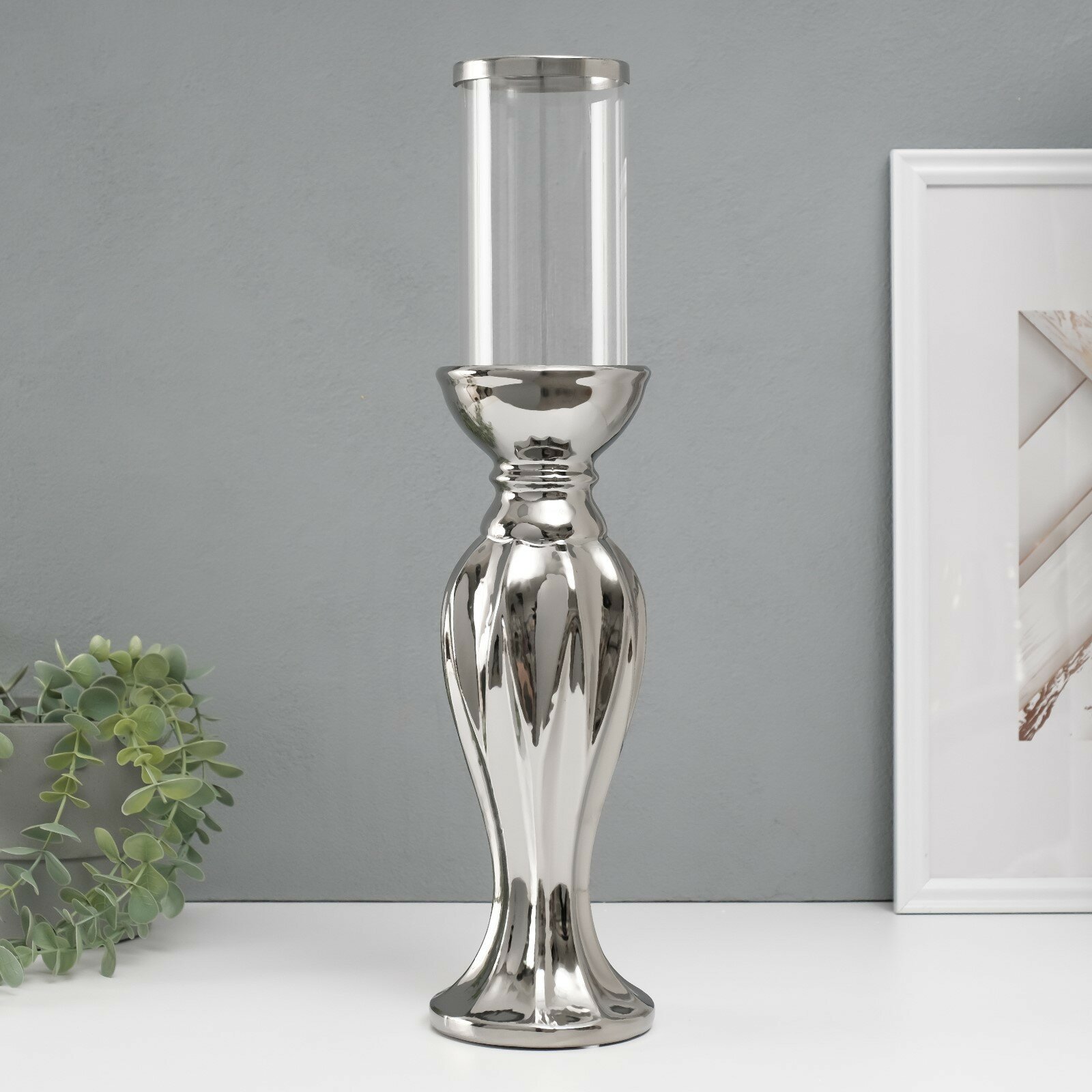 Подсвечник на 1 свечу «Версаль», керамика, стекло, d=7.5 см, серебро, 10.5×10.5×44.5 см информация: