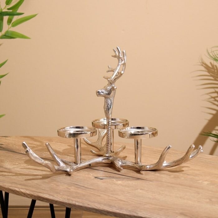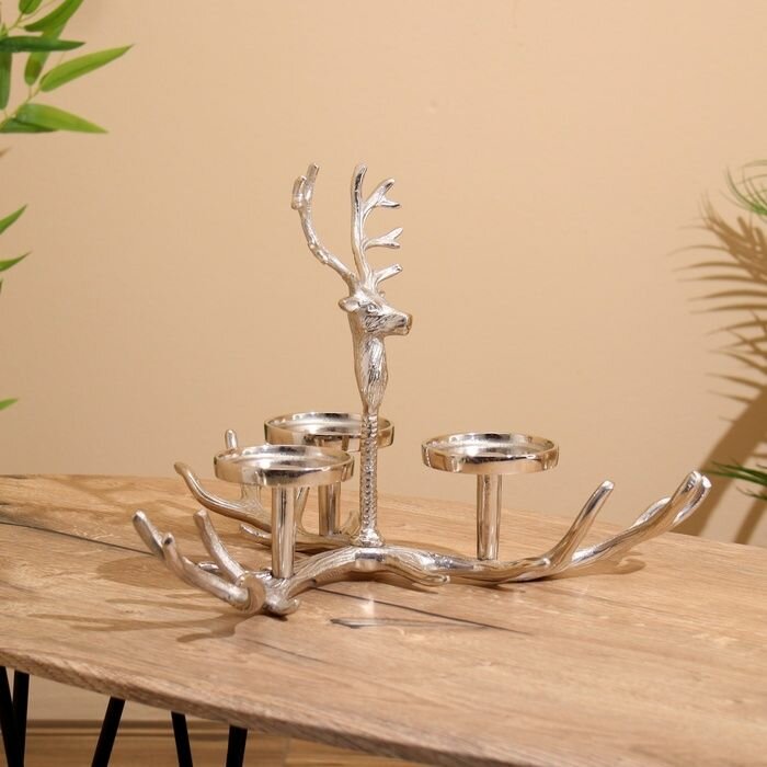 Подсвечник "Олень" алюминий 21х11х35 см, цвет: серебристый, тематика праздника: новый год 2 955 ₽