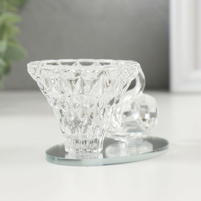 Стеклянный подсвечник на 1 свечу «Лебедь на пруду» информация: