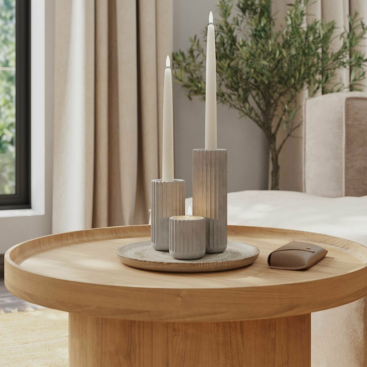 Набор подсвечников Chloe Slim S, M, L для столовых и чайных свечей (всего 3 шт.), бетон, кремовый матовый