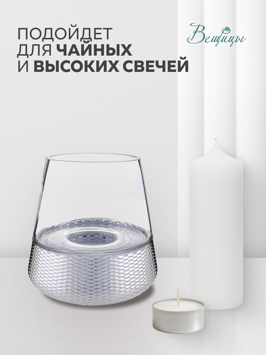 Декоративный подсвечник с cеребрянным напылением, Д200 Ш200 В200, бело-серебристый информация: