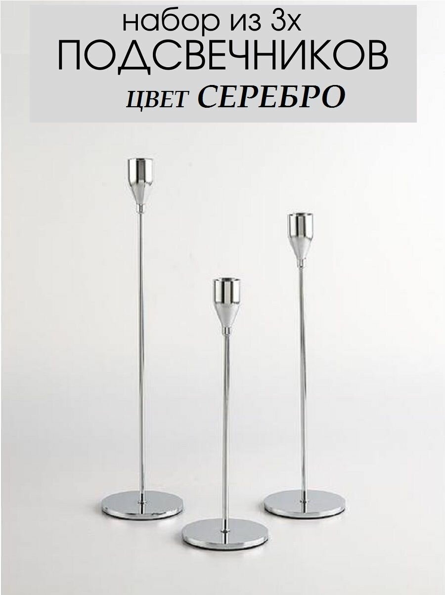10 цен на Подсвечники "NORDIK" серебро для свечей 3 штуки подсвечник высокий металлический новогодний и интерьерный на высокой ножке.