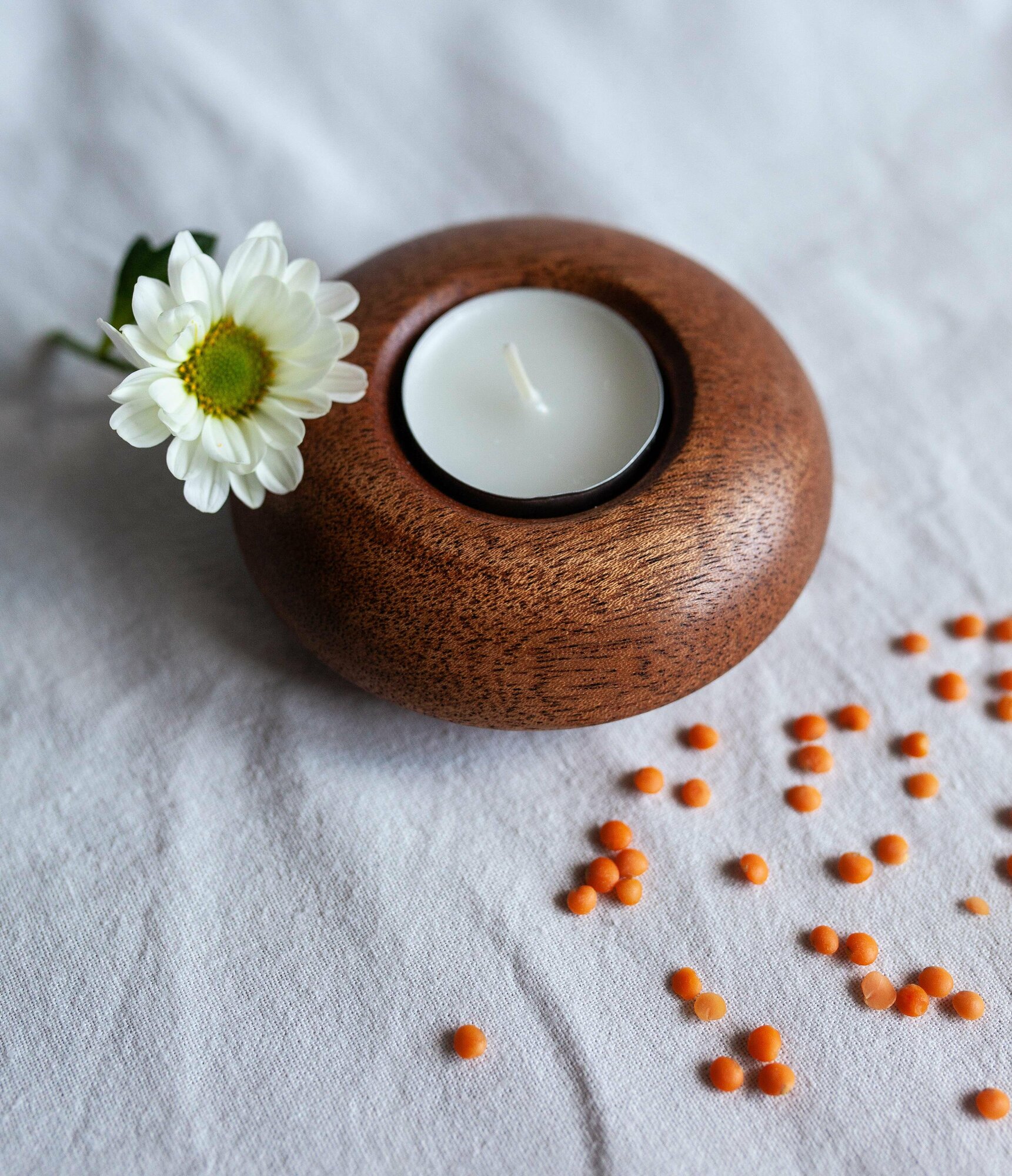 Авторский подсвечник "Чечевица" из массива красного дерева, ручная работа информация: