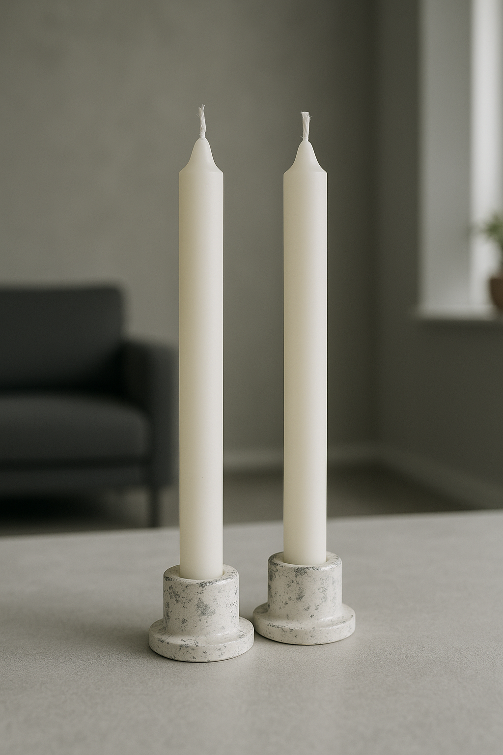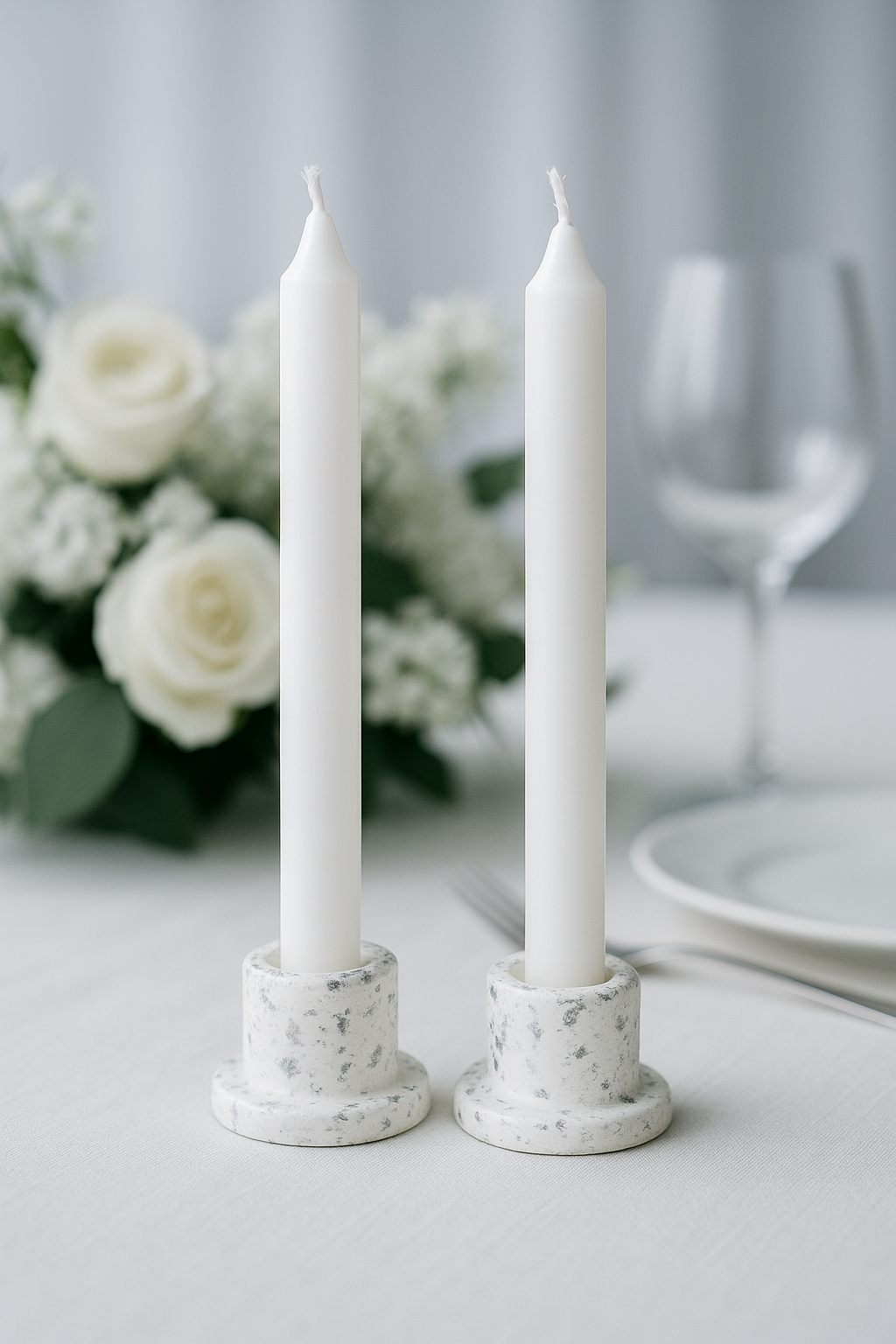 Подсвечники гипсовые белый мрамор, 2 шт — ручная работа, декоративные, для свечей до 2 см 450 ₽