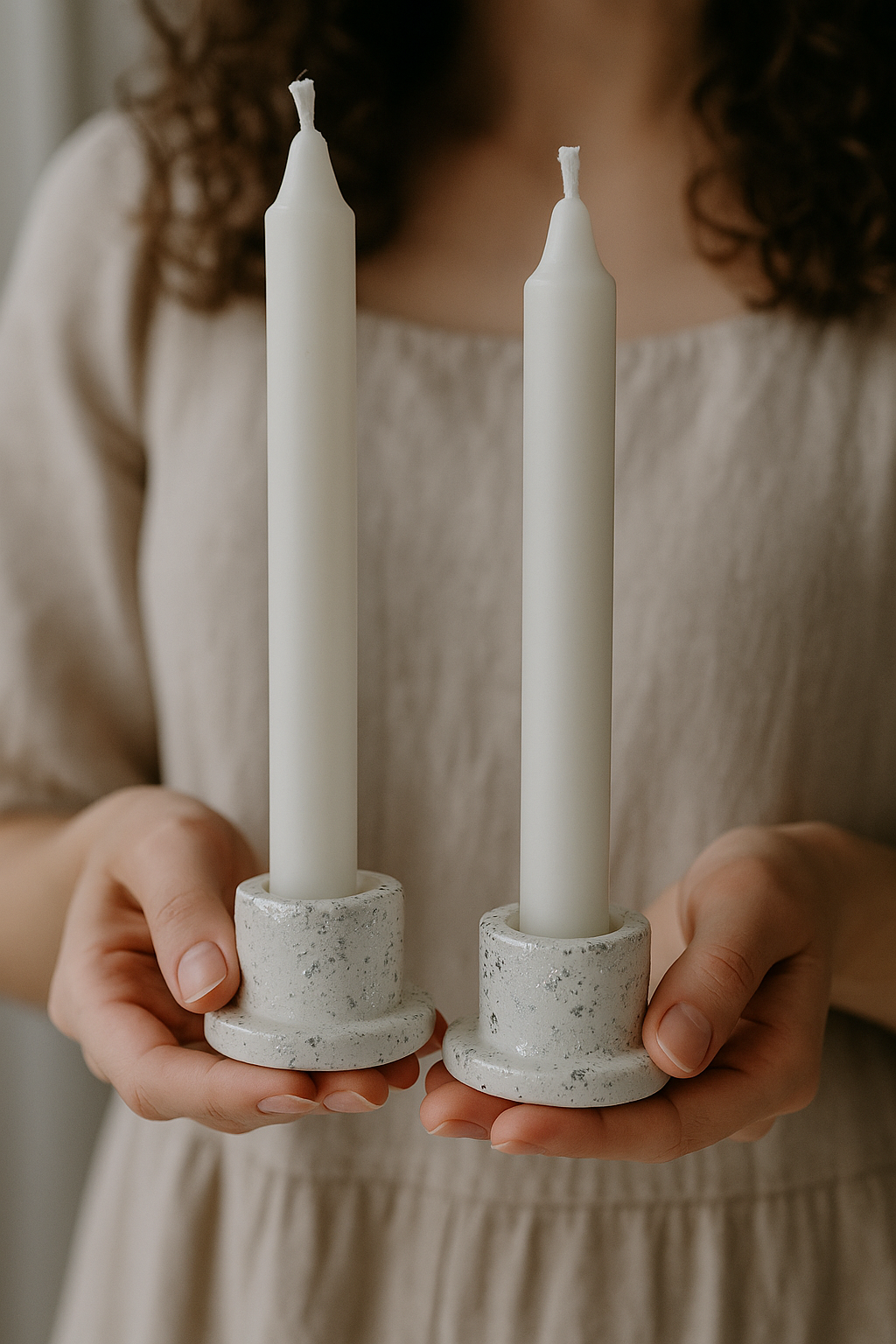 Подсвечники гипсовые белые, набор 2 шт — ручная работа, для свечей до 2 см, интерьерный декор 400 ₽