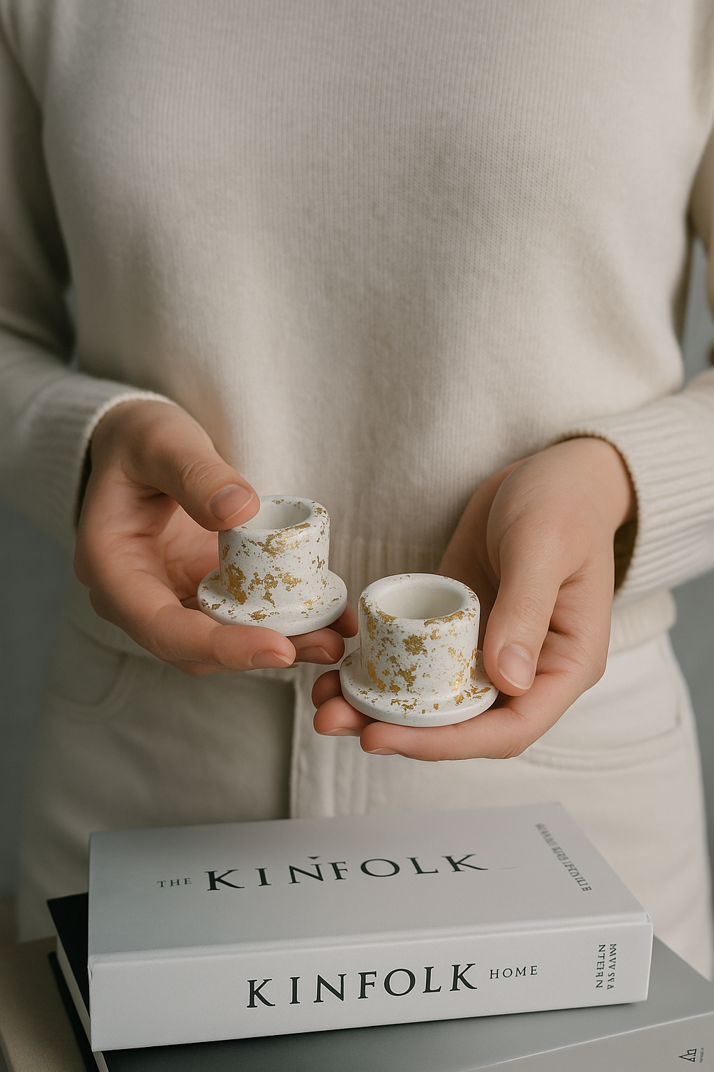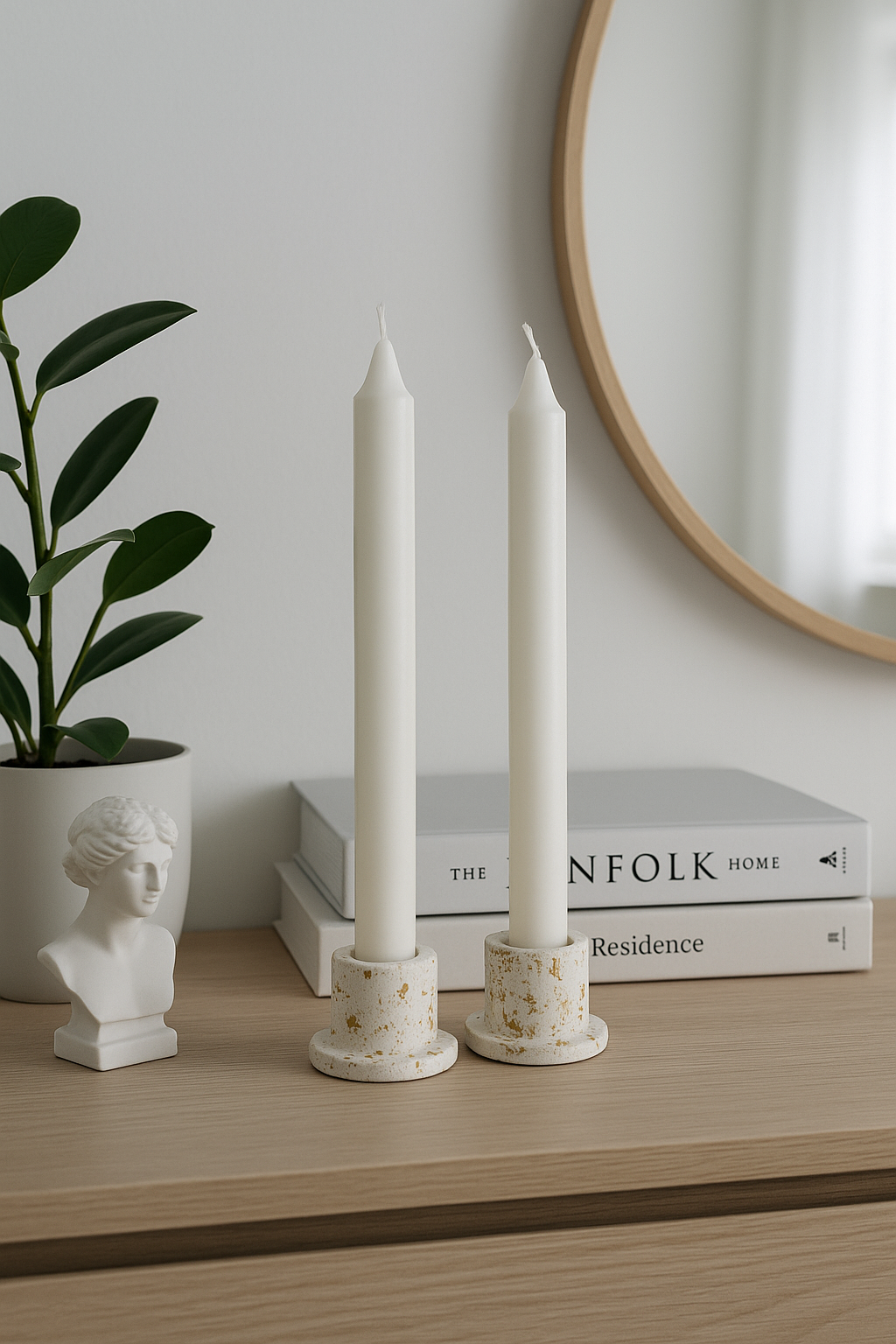 Подсвечники гипсовые белый мрамор, 2 шт — ручная работа, декоративные, для свечей до 2 см 450 ₽